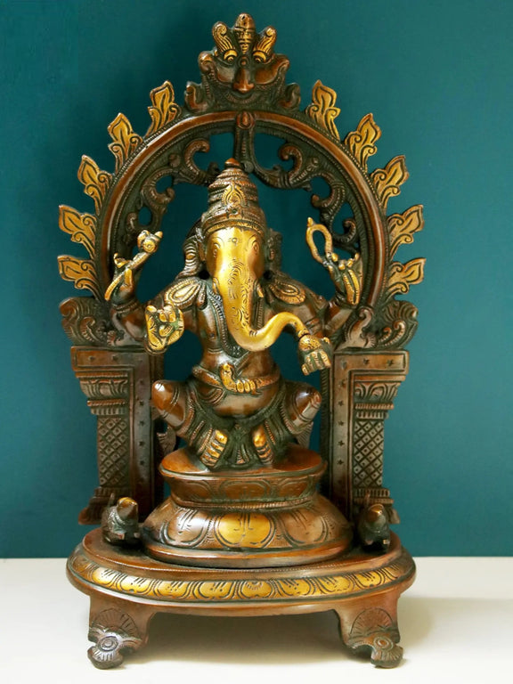 Brass Lord Ganesha Blessing with Kirtimukha Prabhavali 11 inches