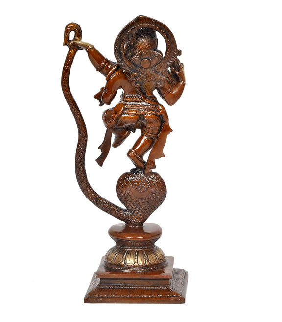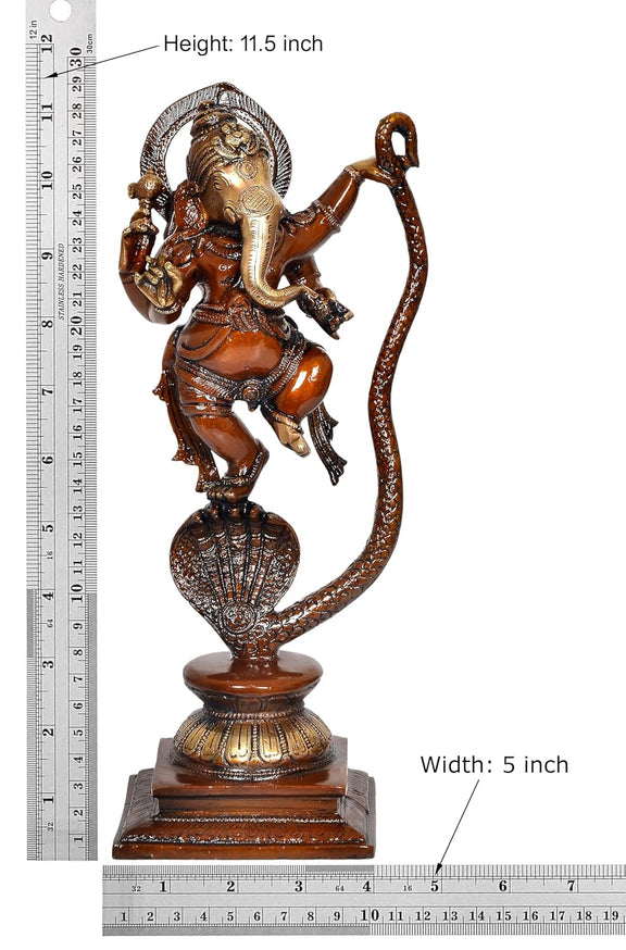 Brass Lord Ganesha Dancing on Serpent Shesha - Hindu Deity Idol for Puja and Gifts (Height 11.5 Inch)