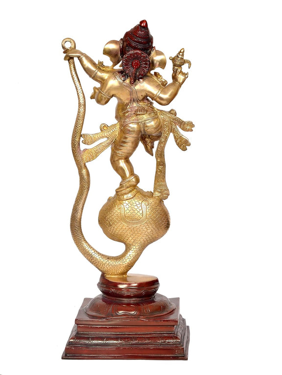 Brass Lord Ganesha Dancing on Serpent Shesha - Hindu Deity Idol for Puja and Gifts (Height 26 Inch)