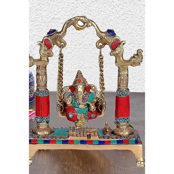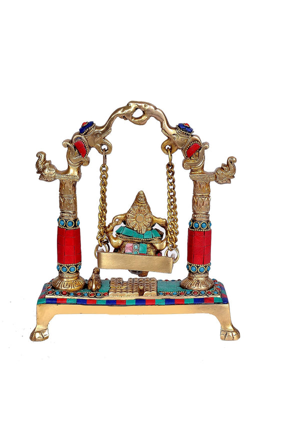 Brass Lord Ganesha on a Swing (Height 8.5 Inches)