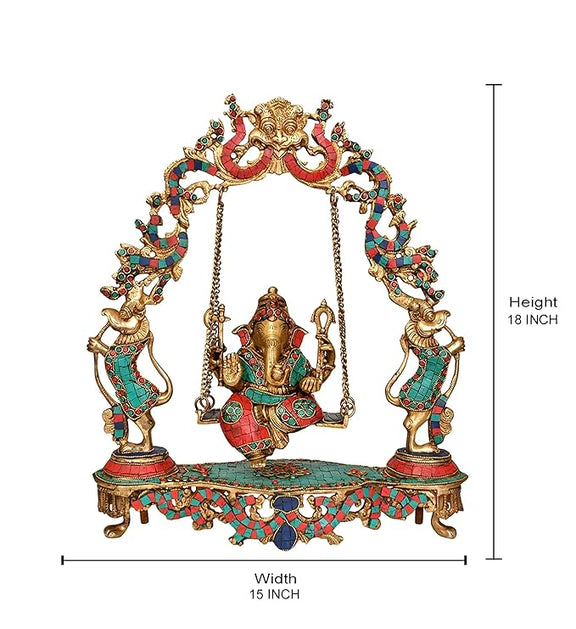Brass Lord Ganesha Idol On a Swing Height 18 inches