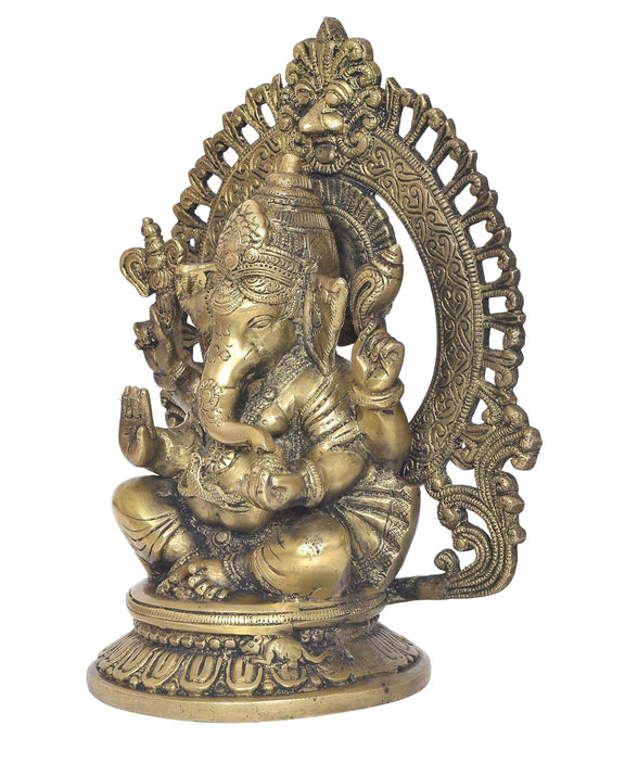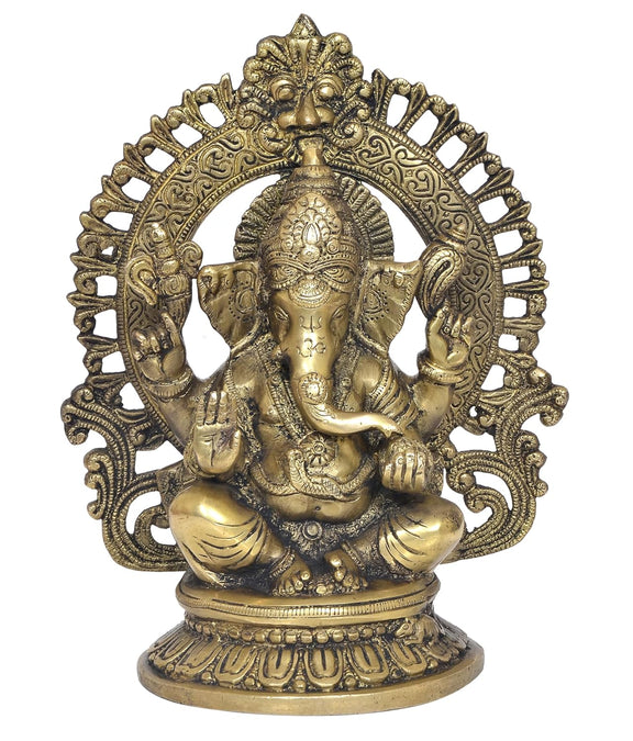 Brass Lord Ganesha Idol Sitting Ganesh Statue Decorative Sculpture for Home Decor Office Mandir Pooja Temple (Height 10 Inch)