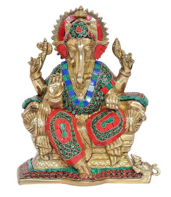 Brass Lord Ganesha Idol Sitting Ganesh Statue Decorative Sculpture for Home Decor Office Mandir Pooja Temple (Height 9.5 Inch)