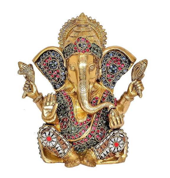 - Elegant Brass and Stone Ganesh Statue: Crafted from high-quality brass and stone materials for a stunning and unique look. Handcrafted by skilled artisans with meticulous attention to detail.
