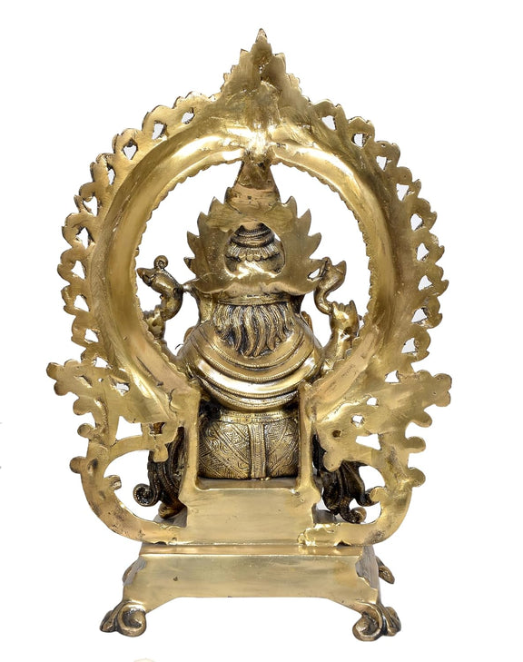 Natural Brass Lord Ganesha Kirtimukha on Throne Idol (Height 16 Inch)