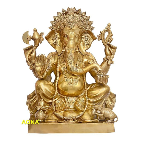 Brass Exquisite Large Lord Ganesha Sitting (Height: 31 Inches)