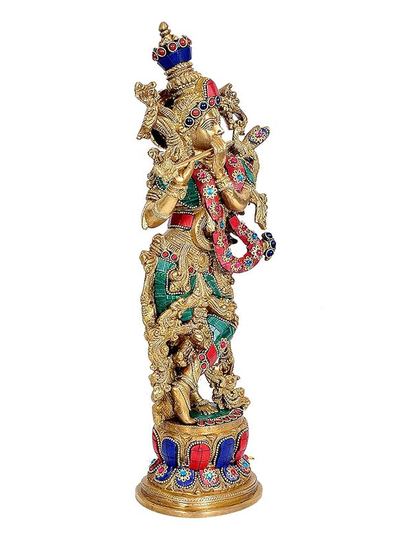 Brass Lord Krishna Idol (Height: 14 Inch)