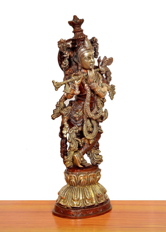 Brass Lord Krishna Sculpture Playing Flute (Height 20.5 Inch)