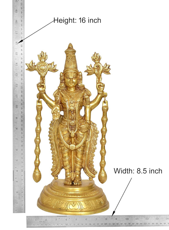 Brass Lord Tirupati Bala Ji Idol Statue for Home Temple Office Decor Figurine Showpiece (Height 16 Inch)