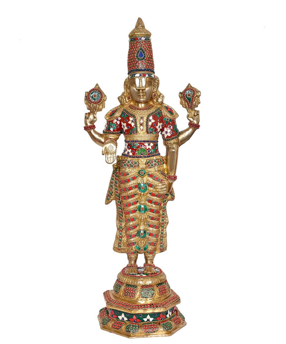 Brass Lord Tirupati Bala Ji Idol Statue for Home Temple Office Decor Figurine Showpiece Multicolour (Height 32 Inch)