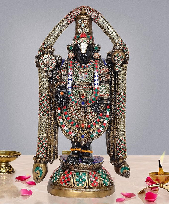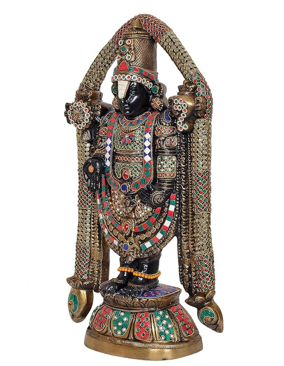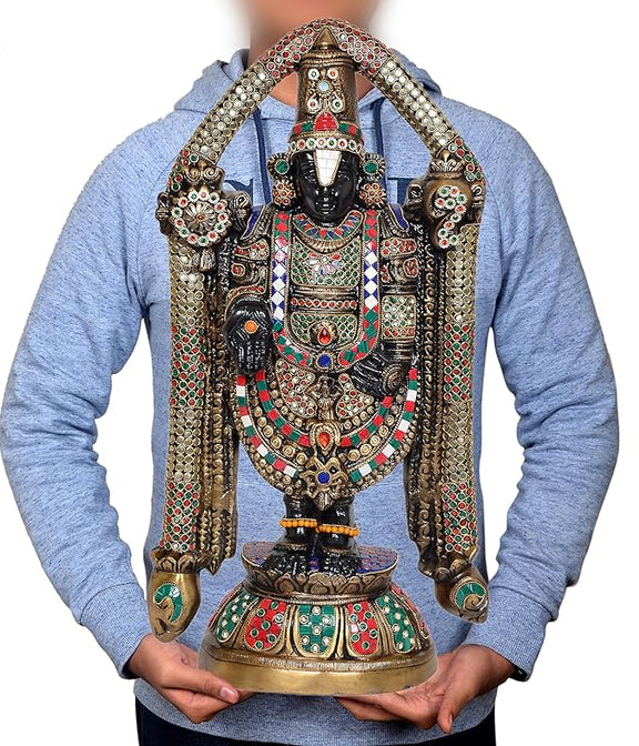 Brass Lord Tirupati Bala Ji Idol Statue Home Temple Office Figurine Showpiece Multicolour (Height 23 Inch)