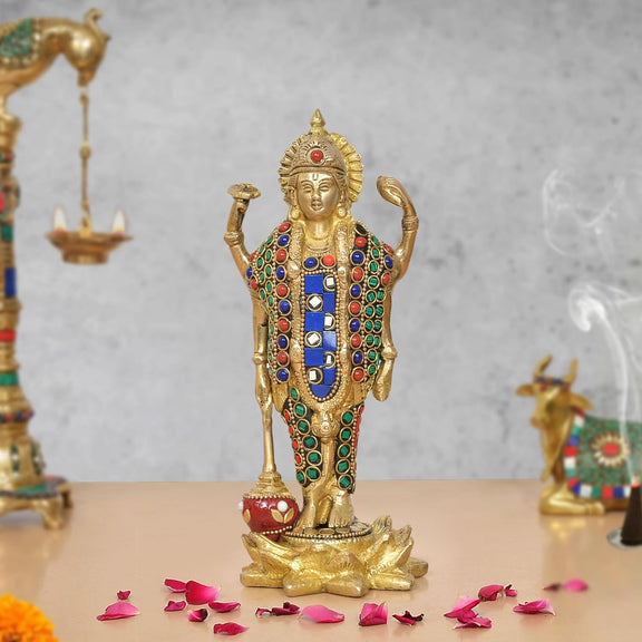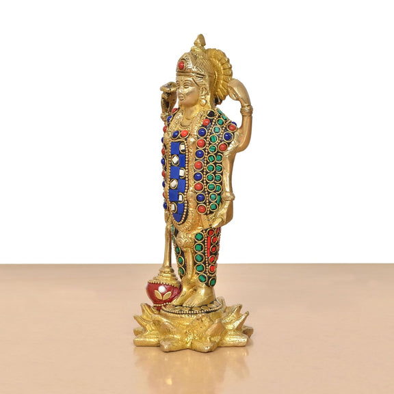 Brass Lord Vishnu Standing Idol (Height 8 Inch)