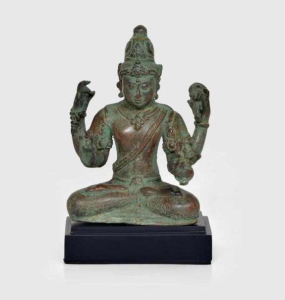 Vintage Indonesian Bronze Lord Vishnu Statue with wooden base (Height 7 Inch)