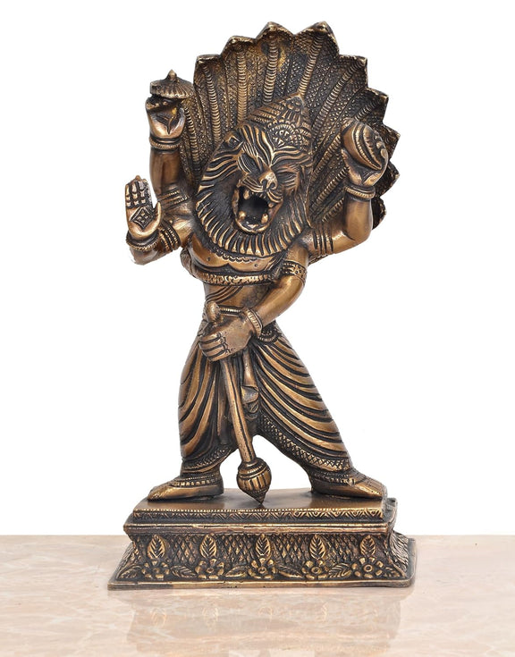 Brass Lord Vishnu's Narasimha Statue for Home Decor Temple Office Mandir, (Height: 11.5 Inch)