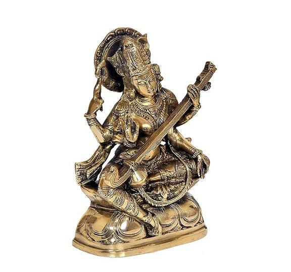 Brass Maa Saraswati Devi murti Idol Statue Goddess of Knowledge and Arts, Height: 7.6 inch