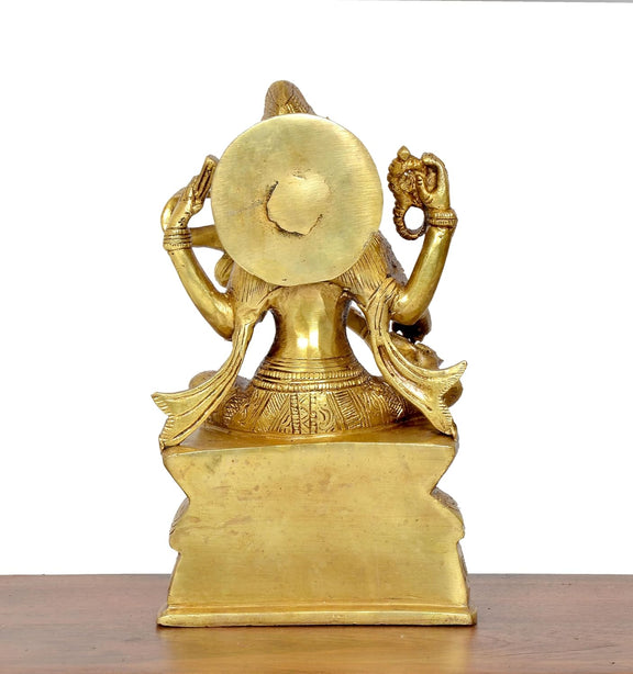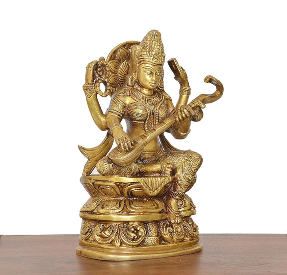 Brass Maa Saraswati Statue Handcrafted Hindu Goddess Saraswati Idol for Home Decor and Pooja (Height 8 Inch)