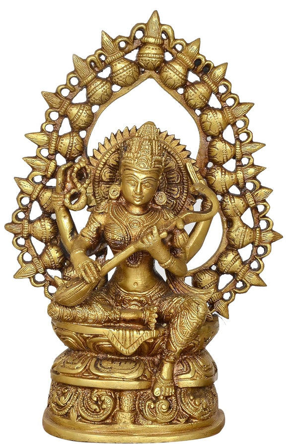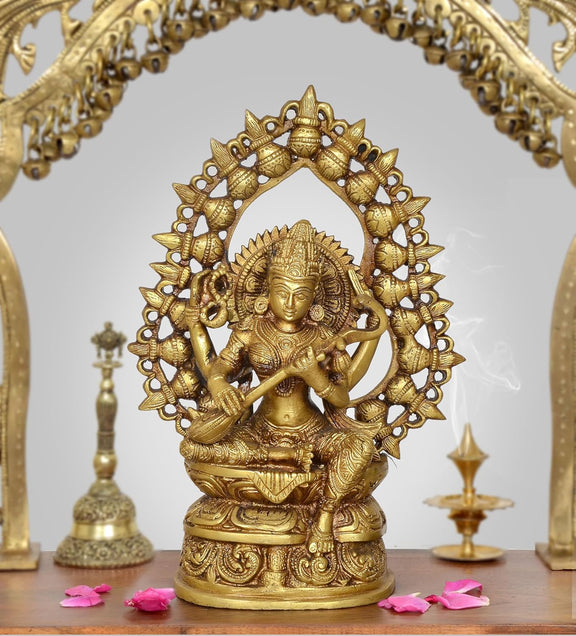 Brass Maa Saraswati Statue Handcrafted Hindu Goddess Saraswati Idol for Home Decor and Pooja Statue (Height 10.5 Inch)