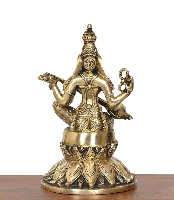 Brass Maa Saraswati Statue Handcrafted Hindu Goddess Saraswati Idol for Home Decor and Pooja Statue (Height 10 Inch)