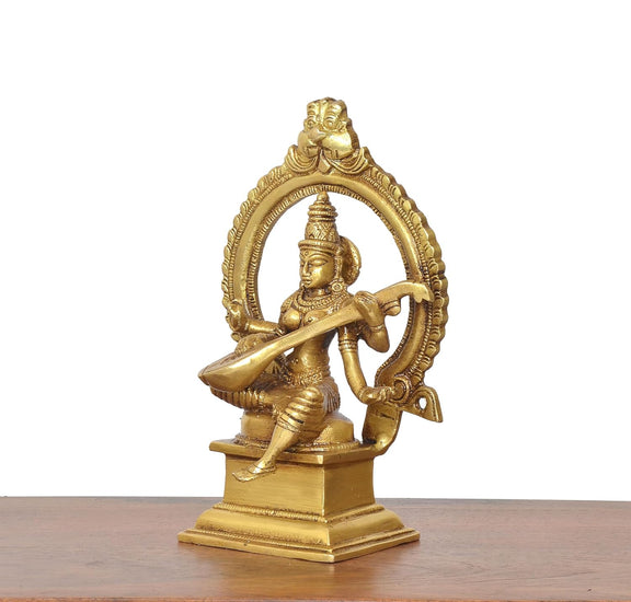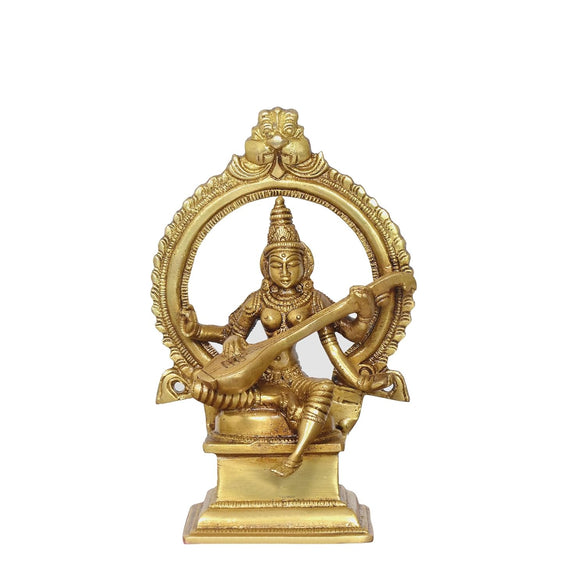 Brass Maa Saraswati Statue Handcrafted Hindu Goddess Saraswati Idol for Home Decor and Pooja Statue (Height 6 Inch)