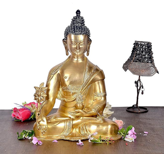 Add an artistic touch to your home with our Brass Medicine Buddha Statue. Crafted with intricate details, this 15-inch statue exudes elegance and spiritual beauty. Made of high-quality brass, it symbolizes health, healing, and inner peace. Grace your space with this exquisite Buddha religious statue.