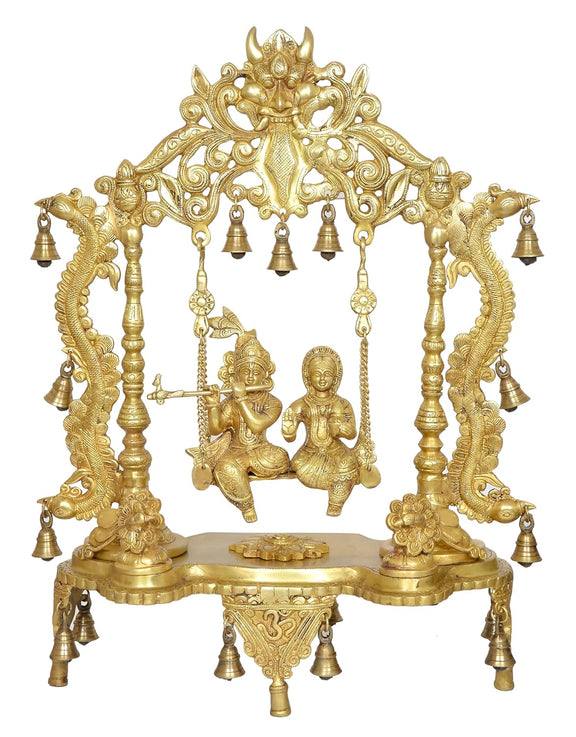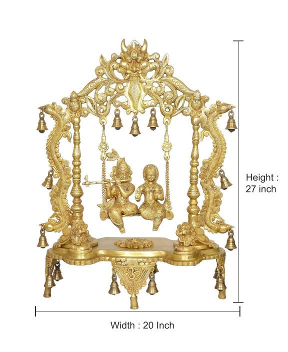 Brass Murlidhar Radha Krishna Murti Statue Idol Playing On Swing Idol Brass Statue, for Home Decor Mandir Pooja Temple (Height 27 Inch) (Golden)