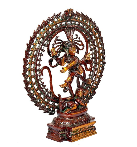 Elegantly crafted and exclusive, our Brass Nataraja Natraj Shiv Murti is a must-have for lovers of art and spirituality. Standing at 20 inches tall, this brass sculpture features a stunning depiction of Lord Shiva in the Nataraja form, surrounded by the sacred symbol of OM (AUM). Enhance your home with this exquisite piece.