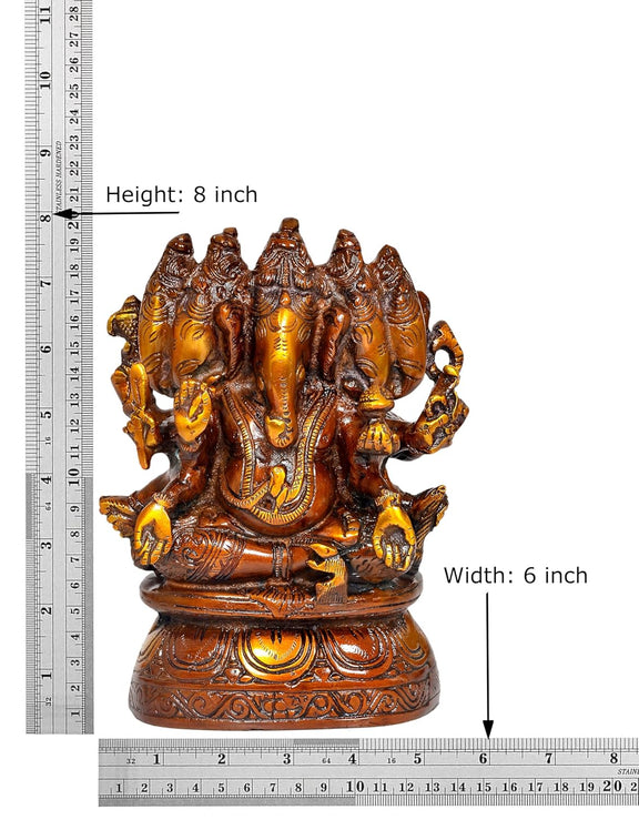 Brass Panchmukhi Ganesha Ganesh Idol Staue Murti for Home Decor Ofice,Temple, Mandir Pooja (Height : 8 Inch)