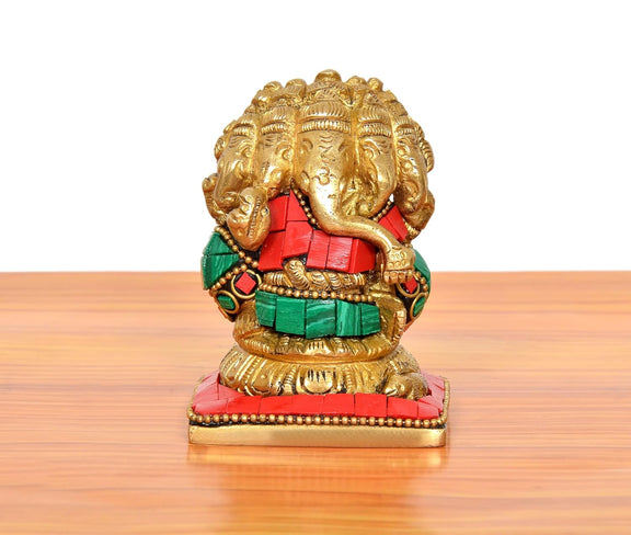 Brass Golden Panchmukhi Ganesha Sitting Murti (Height: 3 inch)