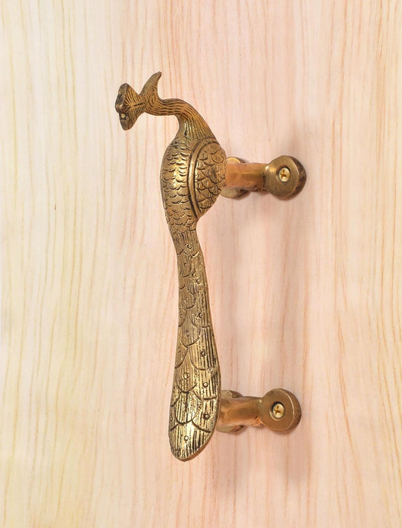 Brass Peacock Design Door Handle (Pack of 1) (Height :6 inch)
