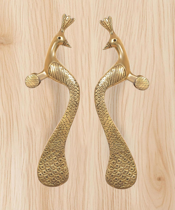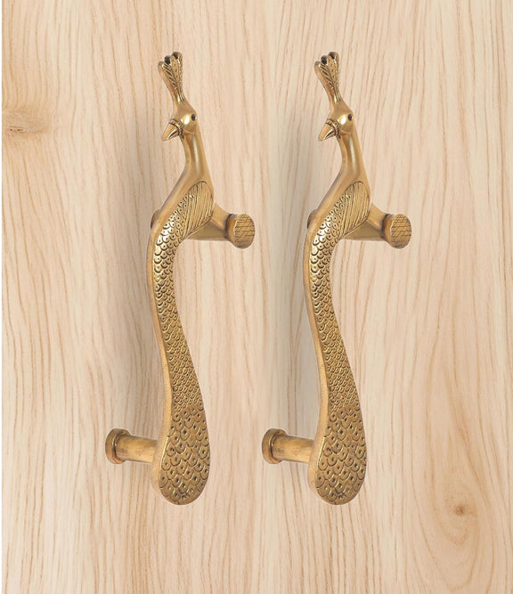 Brass Peacock Design Door Handle Pair (Pack of 2) (Height : 10 inch)