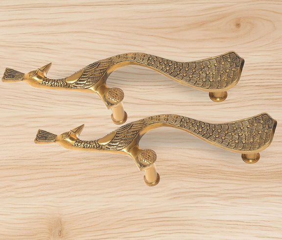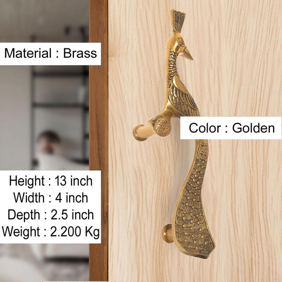 Brass Peacock Design Door Handle Pair (Pack of 2) (Height : 13 inch)