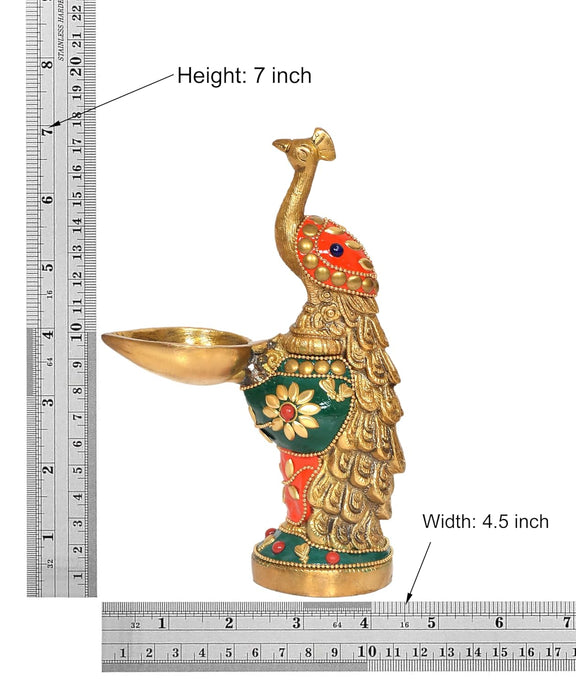 Brass Peacock with Oil Lamp Diya for Home Decor (Height 7 Inch)