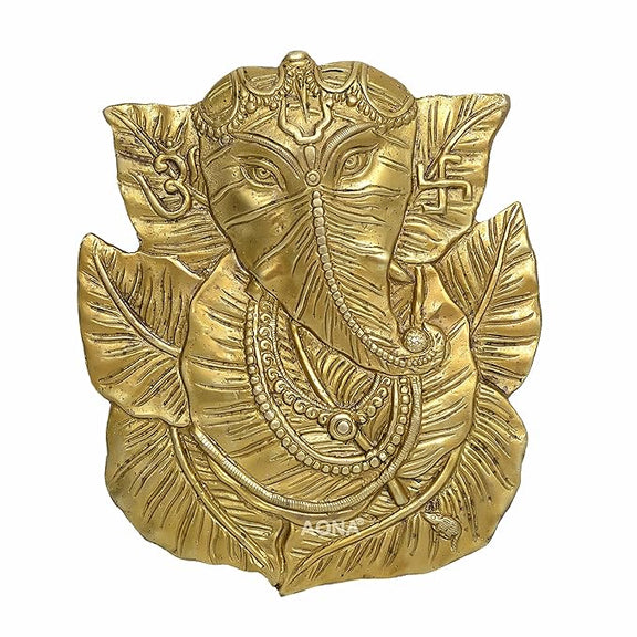 Brass Pipal Leafs Ganesha (Wall Hanging) Brass Statue Home Decor Height 9 Inch