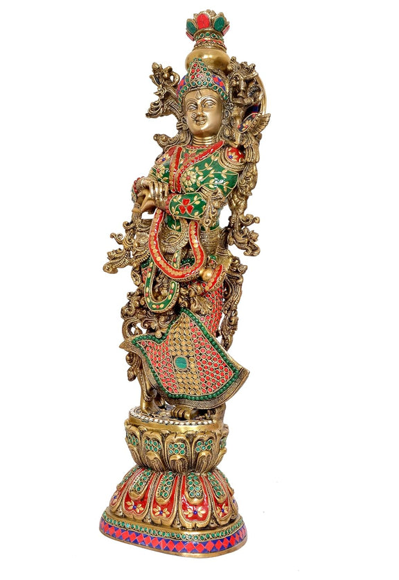 Brass Radha - Big Size - Brass Radha Murti Idol Statue Sculpture for Home Office Pooja Mandir Decor (Height 29 inch)