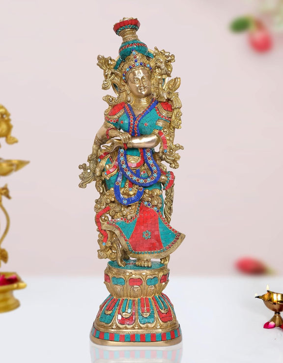 Elevate your home's spiritual energy with this stunning Brass Radha Idol Statue. Standing at 29 inches tall, this exquisite piece adds a touch of grace and divinity to any space. Perfect for home, office, or pooja mandir decor. Experience the inspiring presence of Radha Rani every day