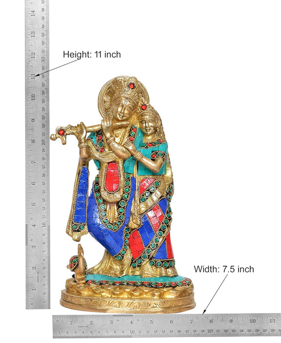 Brass Radha Krishna Idol Statue for Home Decor and Pooja Mandir Temple Office Decor (Height 11 Inch)