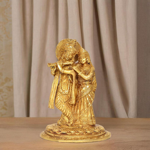 Brass Radha Krishna Idol Statue Radha Krishna for Home Decor and Pooja Mandir Office Decor (Height 8 Inch)