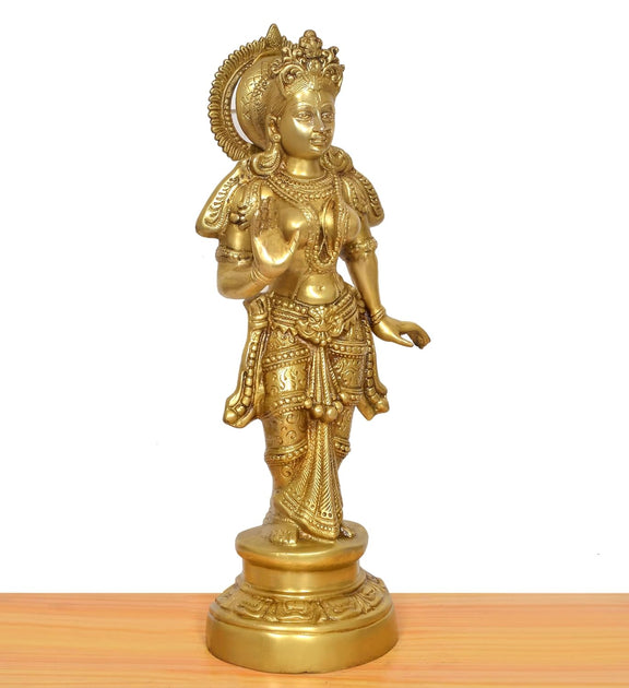 Embrace the divine grace of Lord Krishna's beloved with this exquisite Brass Radha Murti Idol. Standing at an impressive 22 inches, this handcrafted masterpiece captures the ethereal beauty and spiritual essence of Radha in radiant brass. Perfect for your home altar, temple, or sacred space, this idol invites devotion and tranquility into your surroundings. The warm, lustrous finish of brass creates a timeless presence that deepens your spiritual connection. Whether you're a devoted collector or seeking to enrich your spiritual practice, this Radha Murti becomes a cherished focal point for prayer and meditation, radiating love and divine blessings throughout your home.