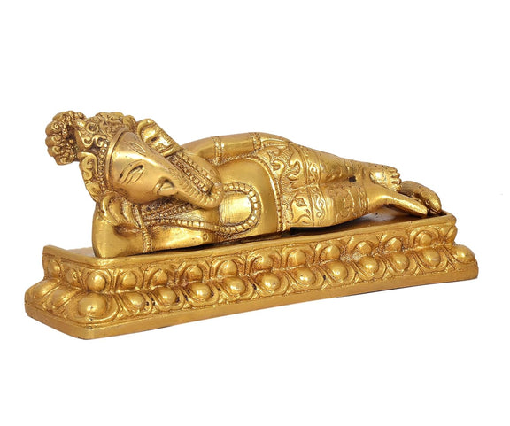 Brass Relaxing Ganesha Statue for Home Decor Mandir Pooja Showpiece Statue (Height 3.5 Inch)