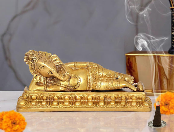 - The calm and composed demeanour of sleeping Ganesh symbolises wealth, luxury, comfort, and prosperity.