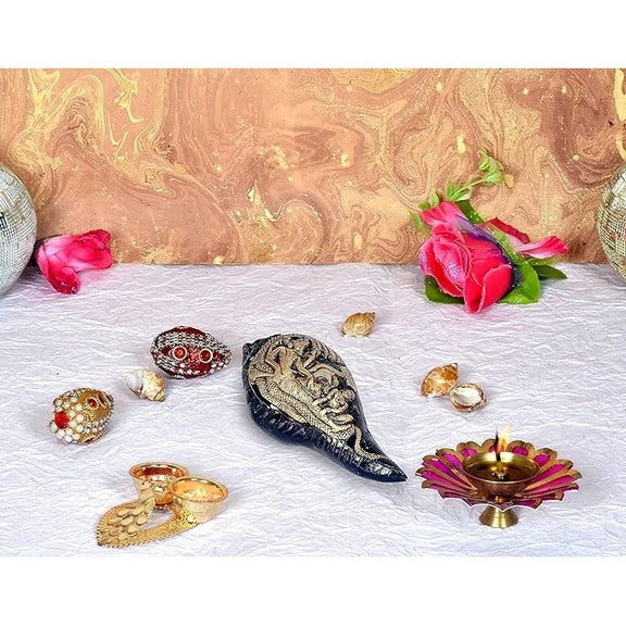 - Idol of Vishnu ji and Lakshmi Embossed very intricately on Shankh