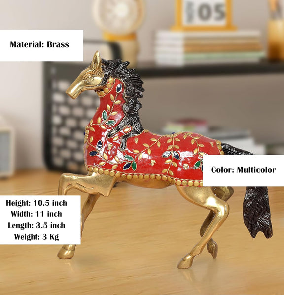 Elevate the energy and harmony of your home with our exquisite Brass Running Horse statue. Standing at a regal height of 10.5 inches, this showpiece brings the power and grace of a galloping horse into your space. Improve your Vastu with this stunning and meaningful addition to your décor.