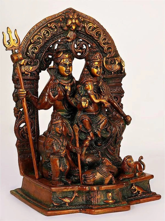 Enhance your home with the divine energy of this beautiful 12-inch Brass Sculpted Shiva Parivar Idol. Made with intricate detailing and high-quality brass, this idol brings peace and positivity to any space. Let the blessings of Lord Shiva and his family fill your home with love and prosperity.