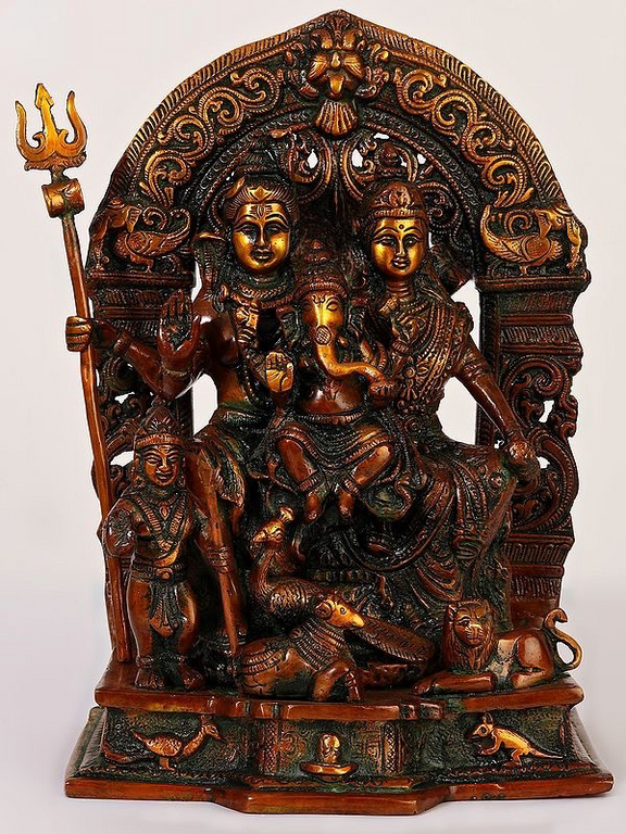 Brass Sculpted Shiva Parivar Idol antique red 12 inches