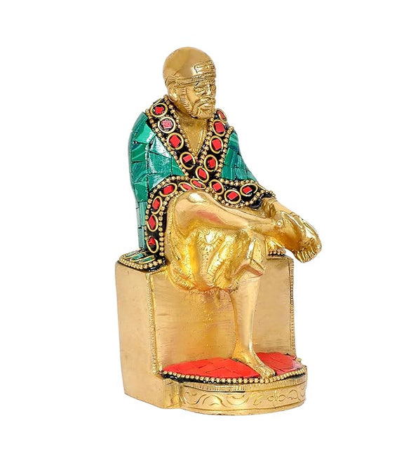 Brass Shirdi Sai Baba Statue Idol Sai Baba Religious Brass Statue (Height: 5 Inch)