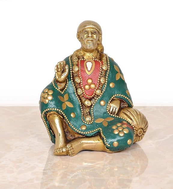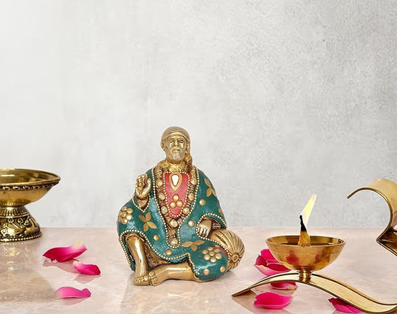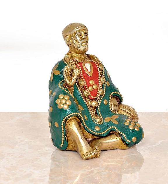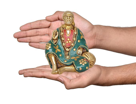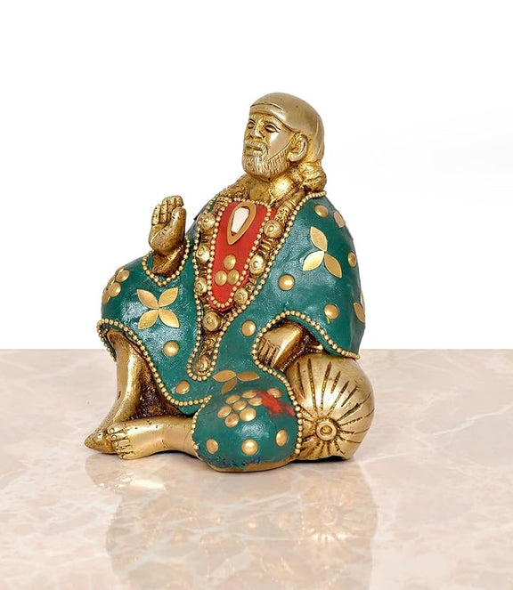 Brass Shirdi Sai Baba Statue Idol Sai Baba Religious Statue (Height: 5 Inch)