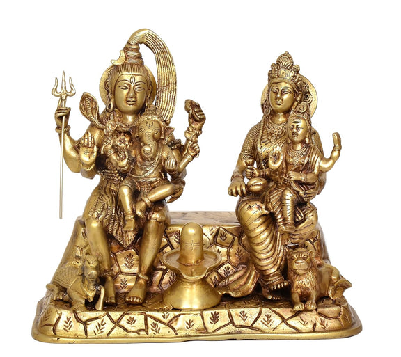 Brass Shiv Parivar Sitting Shiva Family Idol for Home Decor Pooja Mandir (Height 12 Inch)