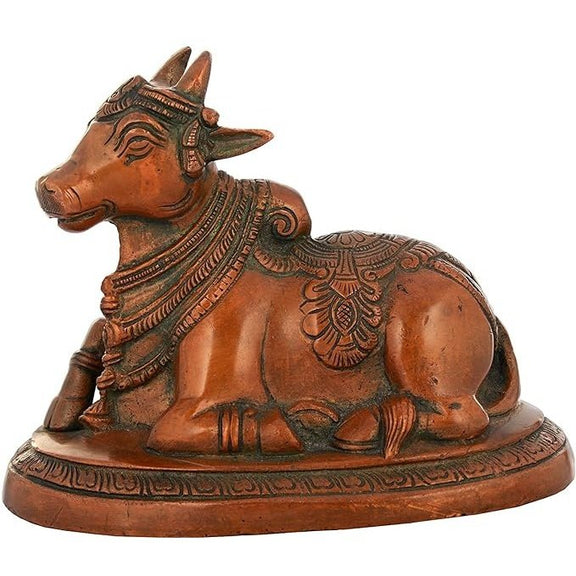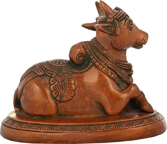 Brass Shiv Parvati Vehicle Bull Statue Shiva Devotee Nandi (4.25" Height x 5.50" Width)