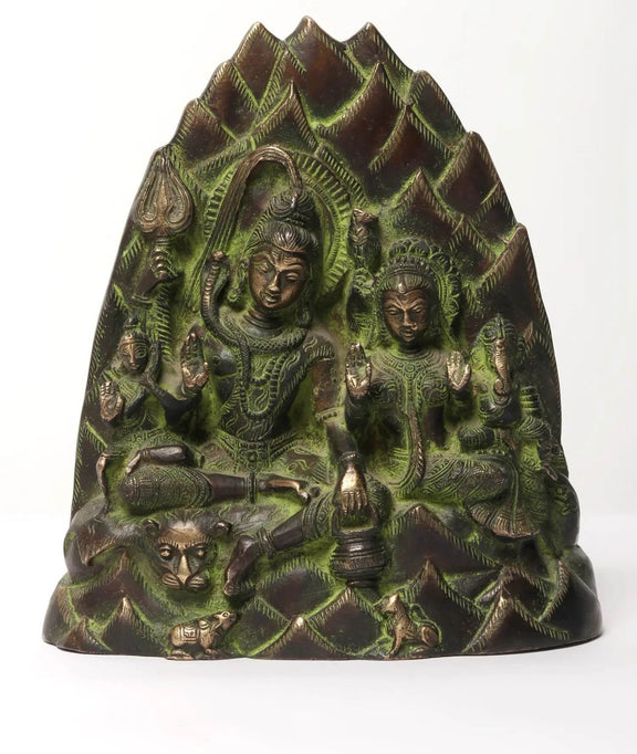 Brass Shiva Family on Kailash Parvat statue 7 inches