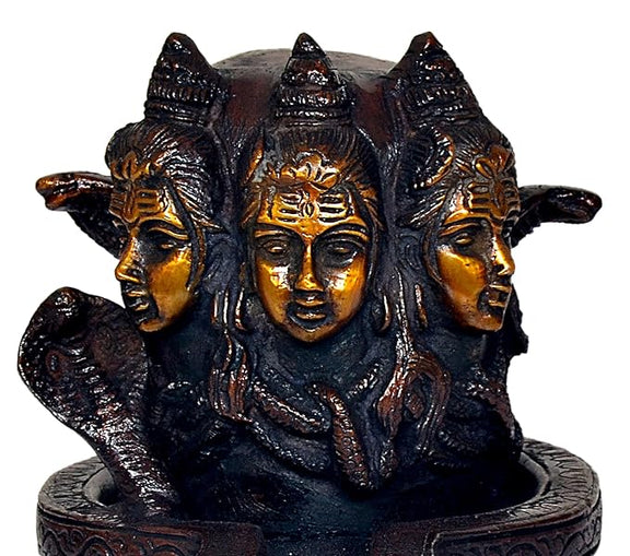 Brass Shiva Linga Statue Idol with 3 Shiva Head Engraved | Height : 5 inches